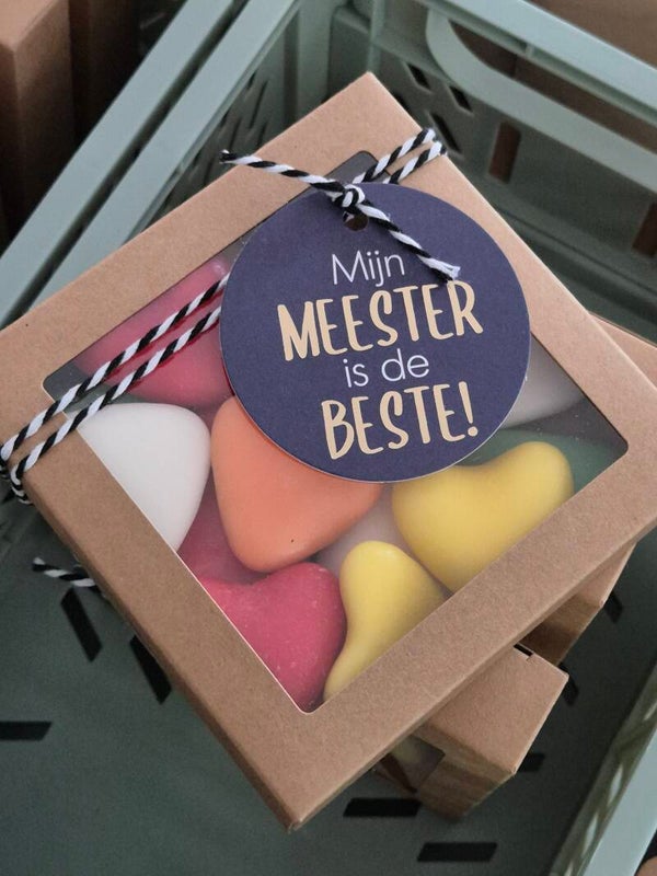 Vensterdoosje hartensnoepjes voor de Juf / Meester