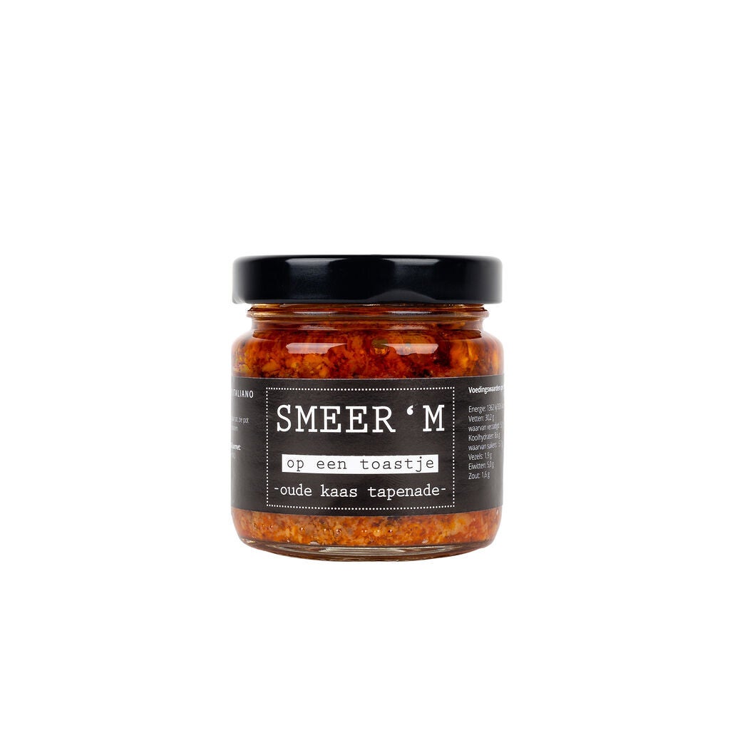 Een lekker potje oude kaas tapenade.