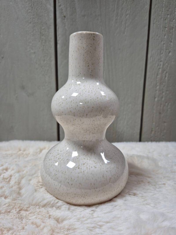 In de kleur creme, met smalle tuit.