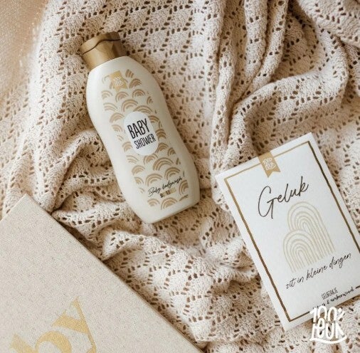 De gouden dop en het leuke printje geeft de baby bodywash een chique uitstraling en dus nog leuker om te geven!
